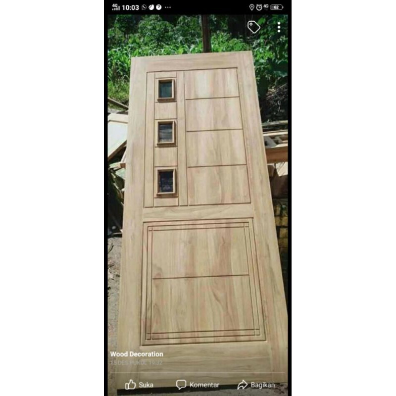 Pintu yang terbuat dari bahan dasar kayu utuh mungkin menjadi produk yang paling banyak digunakan oleh masyarakat di indonesia, salah satunya yaitu selain itu, kayu ini tidak mudah untuk melengkung sehingga cocok untuk diaplikasikan sebagai daun pintu.